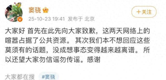 窦骁与何超莲夫妇已于2025年10月23日晚正式回应近期甚嚣尘上的婚变传闻,明确表示两人感情稳定,并呼吁公众勿信谣、勿传谣。