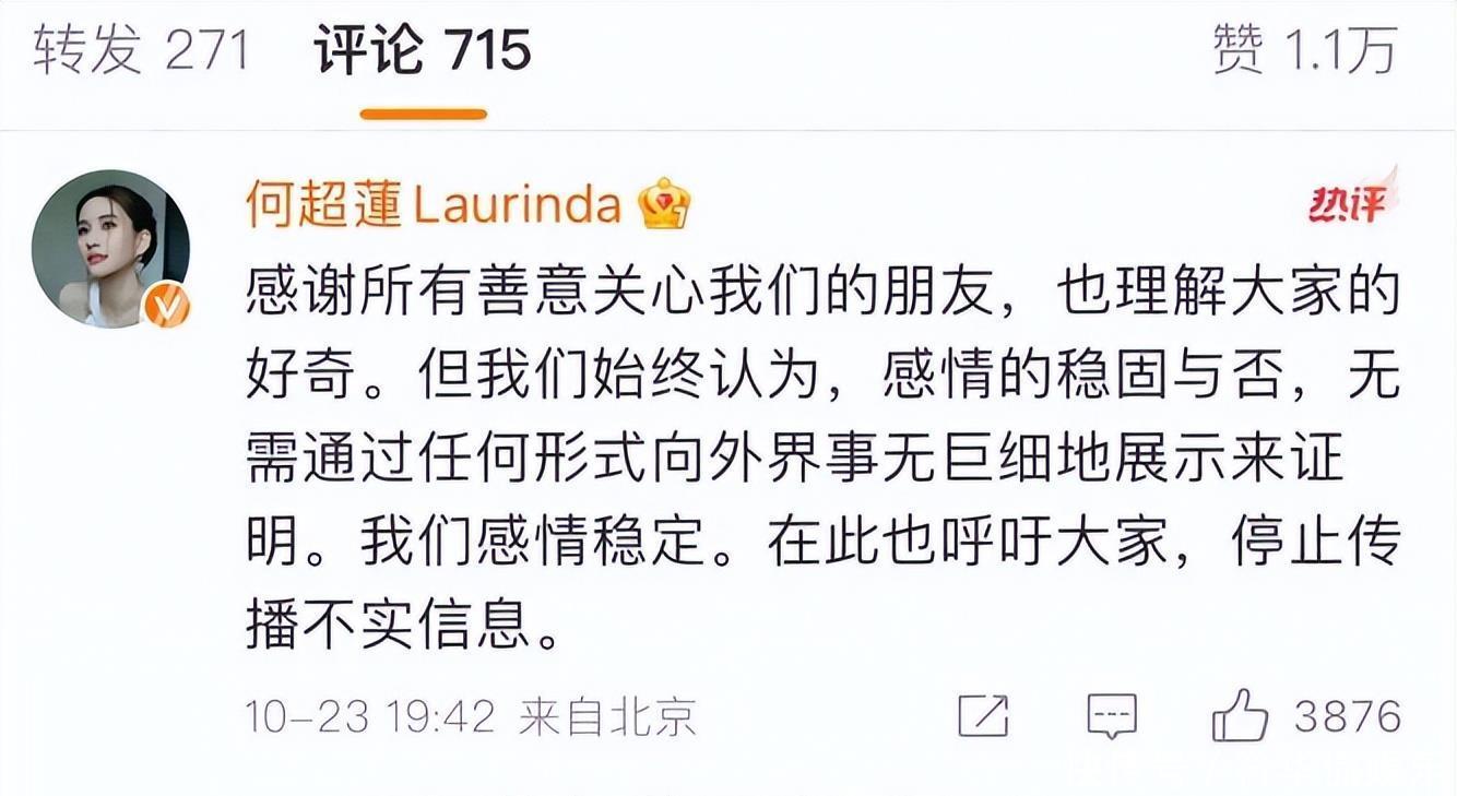 除了当事人的回应,整个事件中还涉及一些值得关注的细节。例如,在2025年,窦骁与何超莲在社交媒体上的公开互动相比以往有所减少,例如窦骁的微博简介从“何超莲的先生”改为“青年影视演员”,这也成为部分网友猜测两人关系生变的依据之一。此外,在婚变传闻发酵后,有知情人士向媒体透露,称窦骁与何超莲“感情甚好,并且已经着手备孕”,这一说法与向太的“离婚说”形成鲜明对比。总而言之,窦骁和何超莲已经对婚变传闻给出了明确且一致的否认。这场风波始于向太一段引人联想的视频,最终以当事人的直接辟谣暂告一段落。作为旁观者,在信息纷杂的网络时代,尊重当事人的公开声明,不过度解读和传播未经证实的猜测,或许是更可取的姿态。
